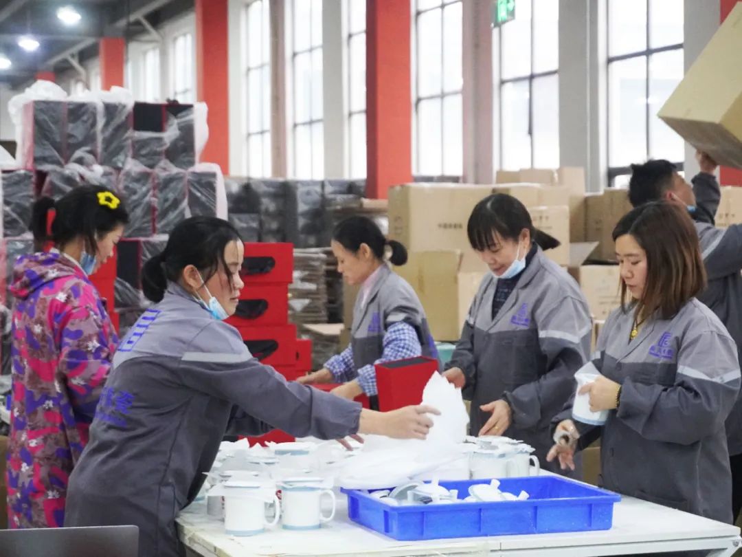 我们新添了数条生产线,从注浆到打包,每一个环节都安排了专门的负责人,严格把控数量与质量。由于此次定制生产的特殊性,我们对每位成员的四个杯子都进行实时质检,随后分类标记,确保每个杯子都达到高品质要求。打包阶段,工作人员认真核对成员名单与产品,保证产品准确无误地对应到每位成员。经过两个多月持续不断的生产,我们在周年庆前夕成功交付这批产品。